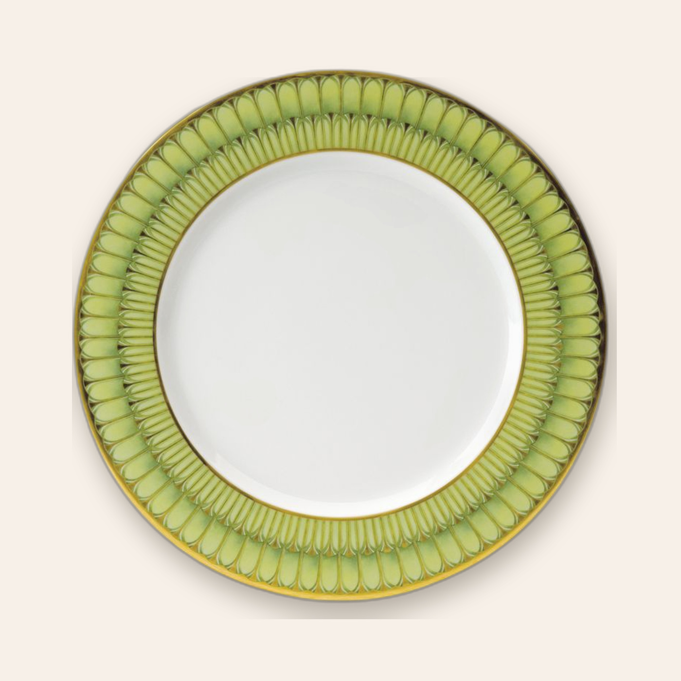 Apportez à votre table une note de luxe français avec cette assiette plate Arcades vert de Deshoulières, manufacture française de porcelaine reconnue pour son savoir-faire made in France. Son décor vert rythmé de lignes architecturales et souligné d’or révèle une allure sophistiquée sans jamais alourdir le dressage. Adaptée aussi bien aux repas quotidiens raffinés qu’aux grandes occasions, elle apporte à la table une présence chic et contemporaine. Une création fidèle à l’art de vivre français, à la fois élégante, lumineuse et intemporelle.