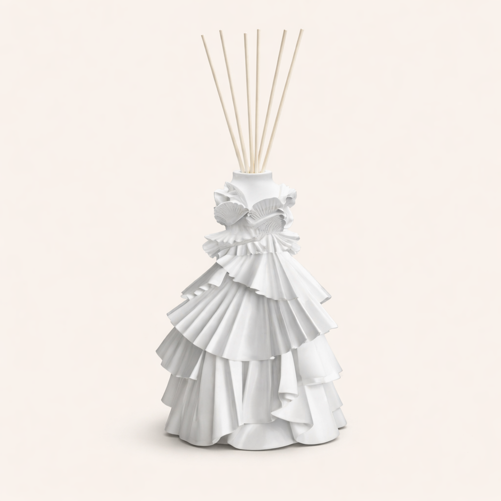 et Livraison au paiementLa collection de diffuseurs Baci Milano réinvente le parfum d’intérieur avec un design couture unique. Inspirés de robes élégantes, ces diffuseurs parfumés deviennent de véritables objets décoratifs. Bianca séduit par son blanc pur et raffiné, Kate affirme un noir intense et sophistiqué, Naomi illumine l’espace avec son or lumineux, Gisele captive par son rouge passion, Claudia apporte une touche gris taupe moderne et minimaliste, tandis que Carla impose un bleu royal chic et audacieux. Chaque diffuseur diffuse délicatement son parfum tout en sublimant votre décoration. Un accessoire design italien idéal pour un intérieur élégant et contemporain.