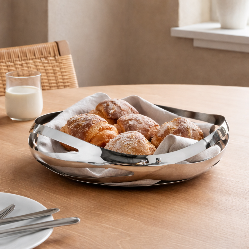 Avec ses lignes fluides et sa finition miroir, cette coupe COBRA signée Georg Jensen apporte une présence sculpturale à la table. Parfaite pour présenter fruits, gourmandises ou comme objet décoratif, elle associe minimalisme et élégance.