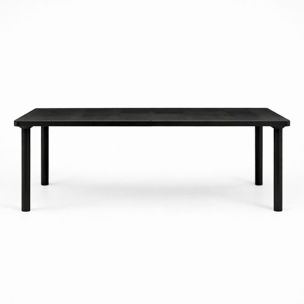 Table à rallonge Libeccio Nardi anthracite au style affirmé, idéale pour structurer un espace repas extérieur avec sobriété. Son plateau travaillé d’un motif décoratif rappelle l’esprit du mobilier traditionnel revisité dans une version plus actuelle. La rallonge intégrée permet de recevoir davantage de convives sans alourdir la ligne générale. Une table fonctionnelle, élégante et adaptée aux terrasses comme aux jardins contemporains.