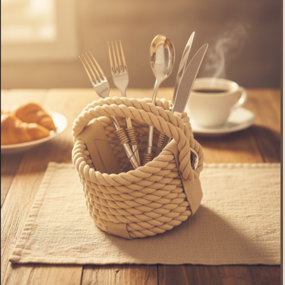 Organisez votre table avec prestige grâce à ce range-couverts exclusif. Doté de diviseurs en plexiglas pour une organisation optimale, il est entièrement revêtu de cordage marin de haute qualité. Les poignées intégrées facilitent le transport du buffet à la table. C’est l’accessoire idéal pour une décoration soignée et fonctionnelle. Son design robuste et sa finition artisanale en font un objet de décoration à part entière. Une fusion parfaite entre l’utilité marine et le raffinement de l’art de vivre italien.