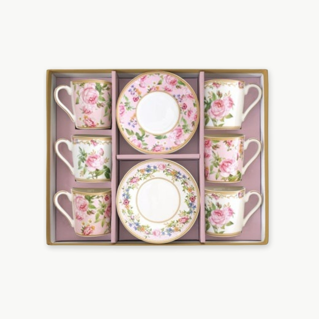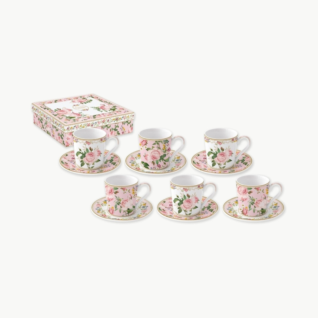 Service de 6 tasses à café avec soucoupes 100 ml Chant des roses