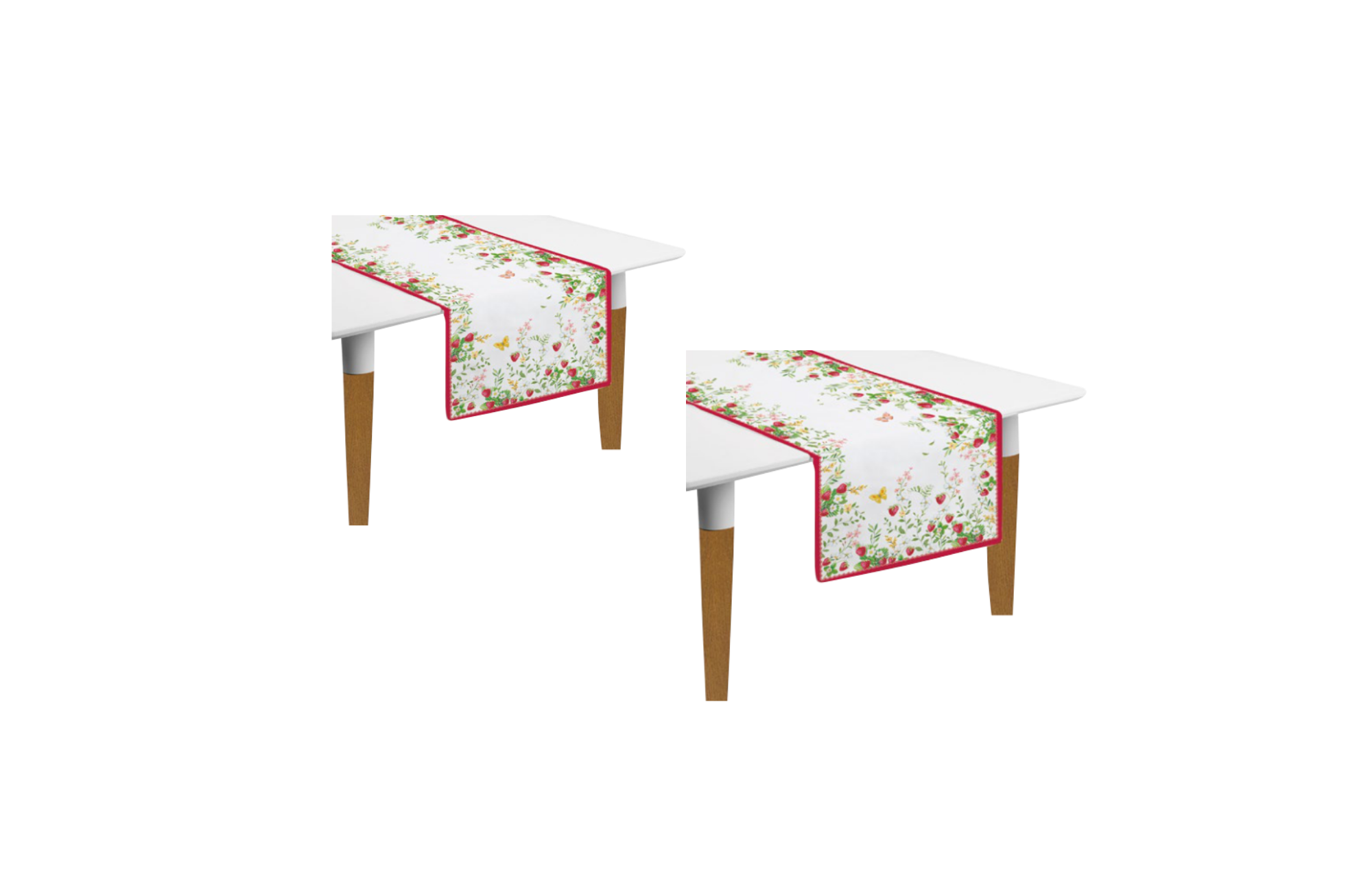 Set de 2 runners de table Easy Life en coton 100 %, collection Jardin des fraises, dimensions 45 x 140 cm. Ideals pour habiller une table avec raffinement, ils structurent la presentation tout en apportant une ambiance florale et chaleureuse. Une belle option pour les repas du quotidien ou les tables de reception.