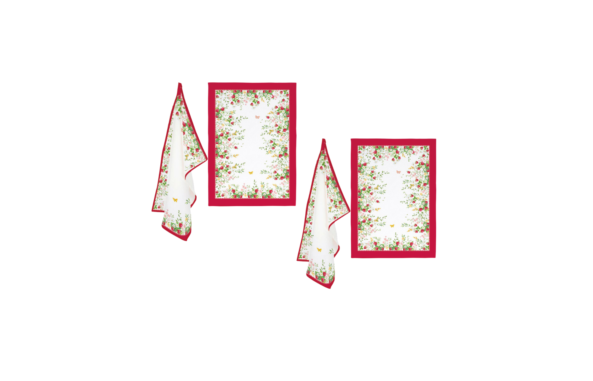 Set de 2 torchons Easy Life en coton 100 %, collection Jardin des fraises, format 50 x 70 cm. Pratiques pour la cuisine au quotidien, ils offrent une bonne absorbance tout en ajoutant une note decorative douce et champetre. Leur motif inspire du jardin apporte charme et fraicheur a l’espace cuisine.